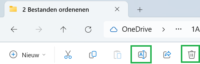 Met de opdrachtknoppen in de werkbalk van de Verkenner kan je mappen maken en bestanden verplaatsen. Je hebt bijvoorbeeld knoppen voor: Nieuwe map, knippen, kopiëren, plakken, naam wijzigen, delen en verwijderen.