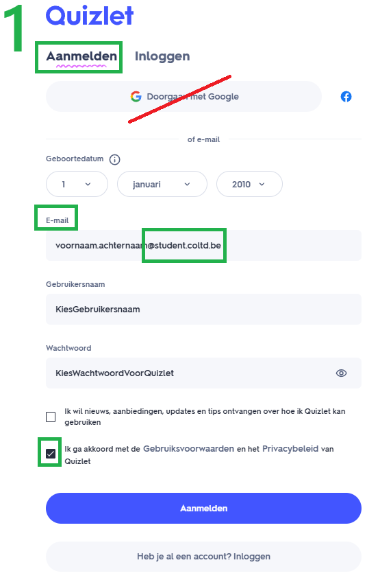 Ga naar Quizlet.com en klik op Aanmelden of volg deze link.